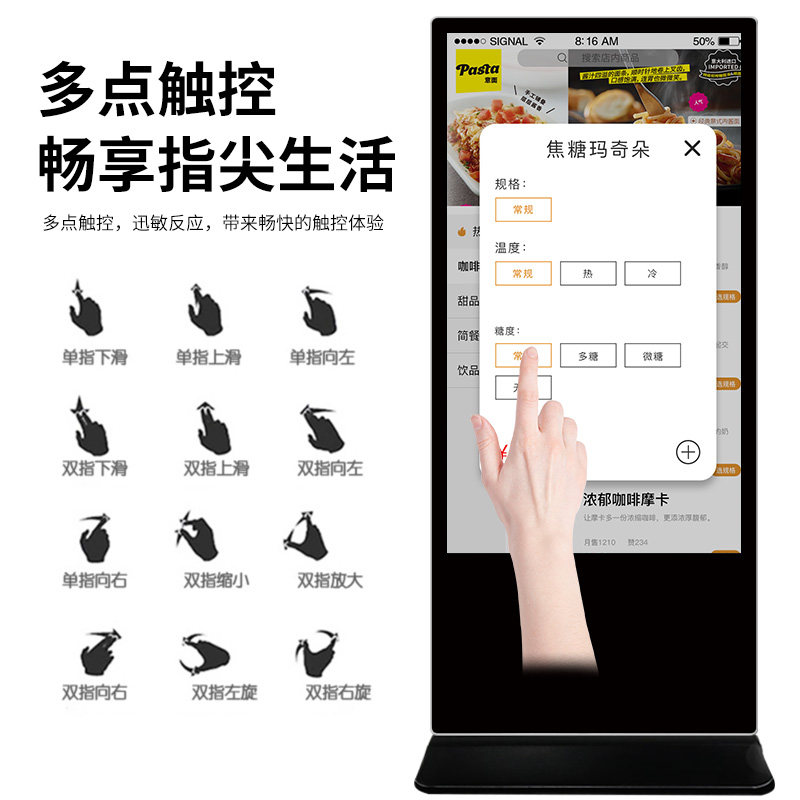 Number of crowns 22 27 32 32 43 inch 50 inch 55 65 inch 65 inch 65 inch 65 inch wall-mounted advertising machine display upright landing hanging milk tea shop TV interactive touch 4K high-definition vertical lift poster promotional screen