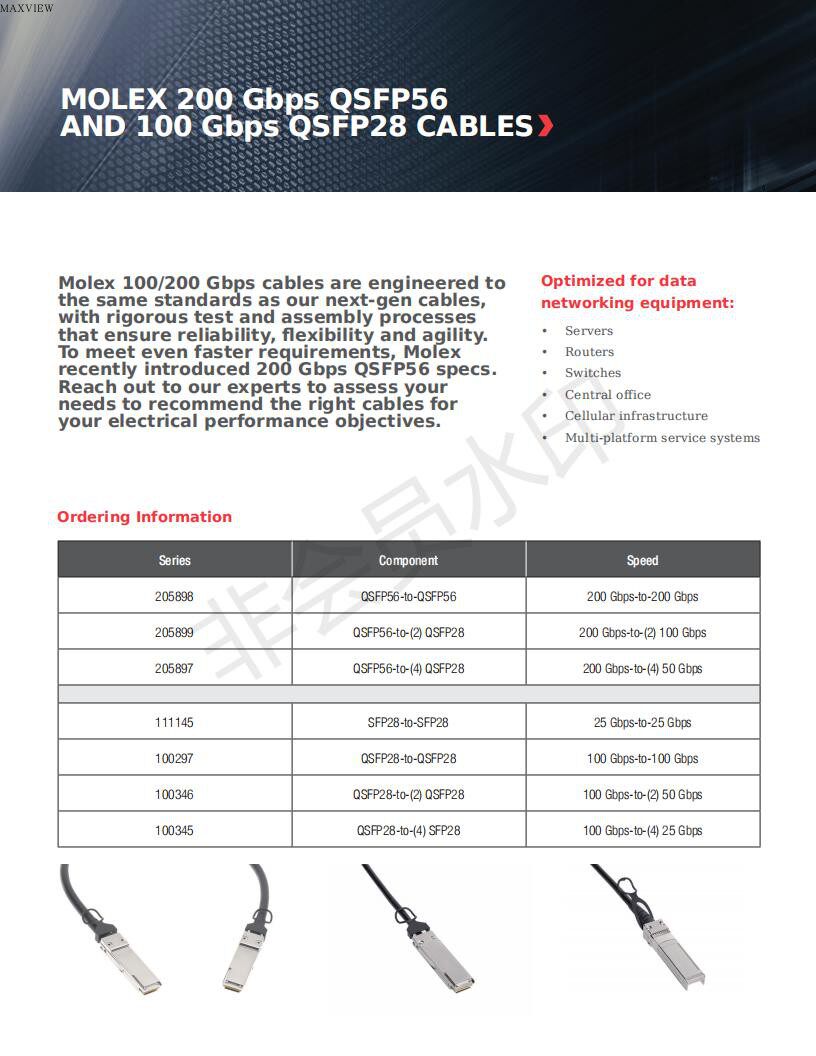 Molex 100G ZQSFP 1*ZSFP 25G DAC 0 5-5 0 meters 1003459154 series
