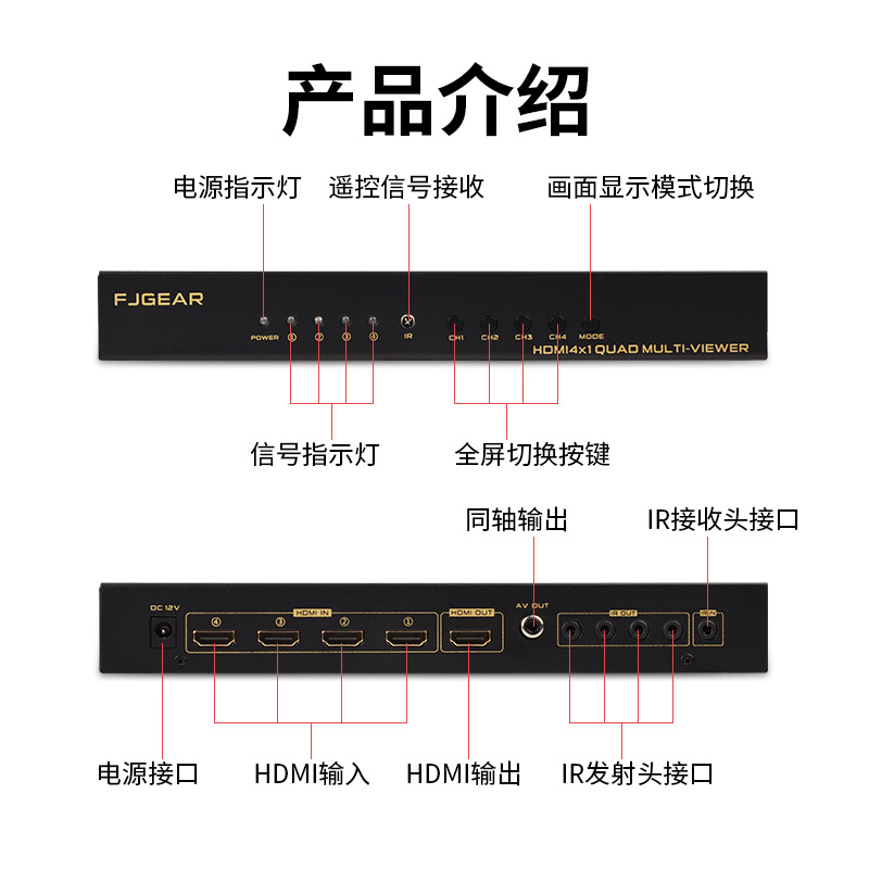 Funger HDMI splitters hdmi seamless switcher 4 in 1 out of 4-way division of the same screen 4 pictures DNF