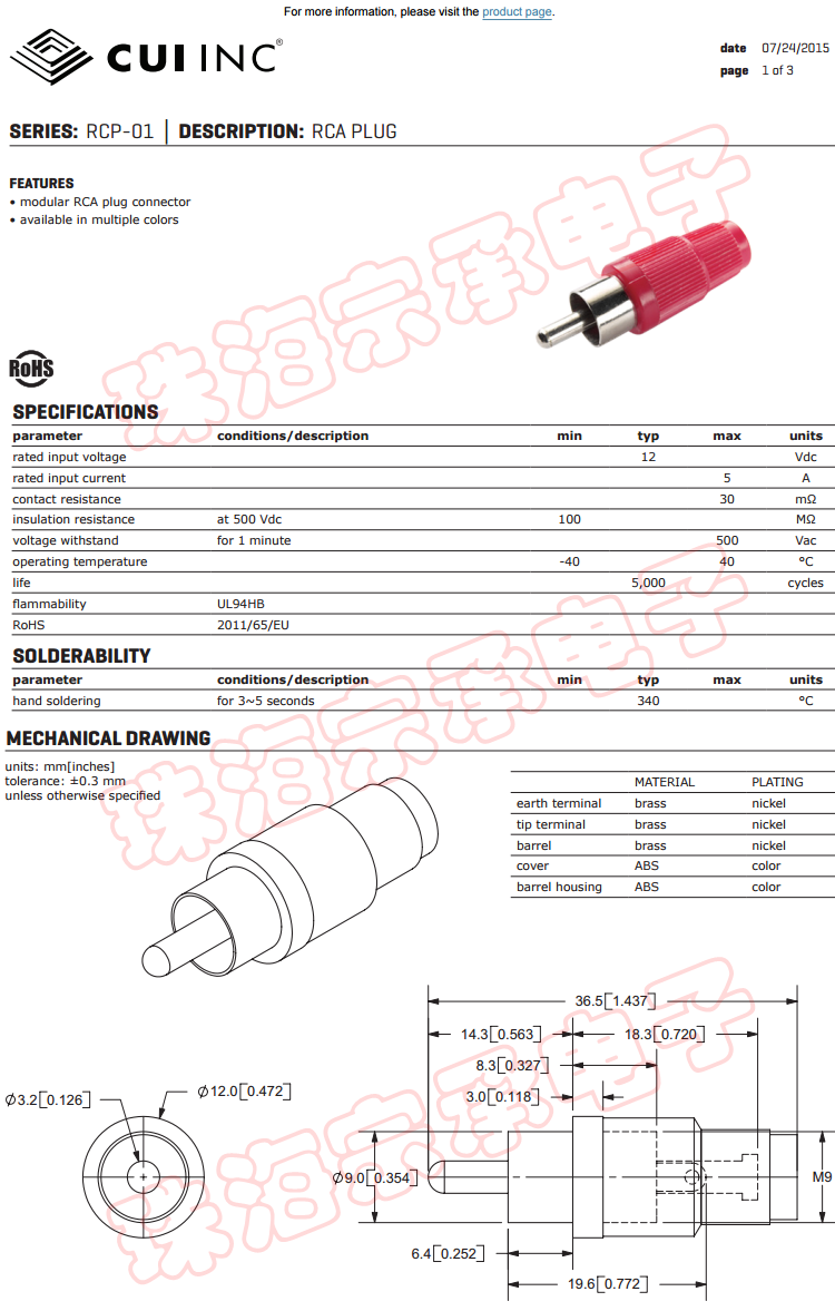 Imported Taiwan black CUI Inc RCA lotus plug audio and video cable RCP-011