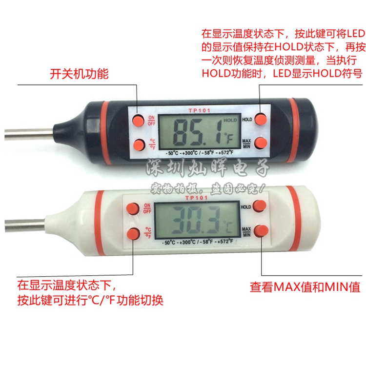 TP101 Pen Thermometer Kitchen Oil Thermometer Grill Baking Liquid Temperature Measuring Pen Electronic Food Thermometer