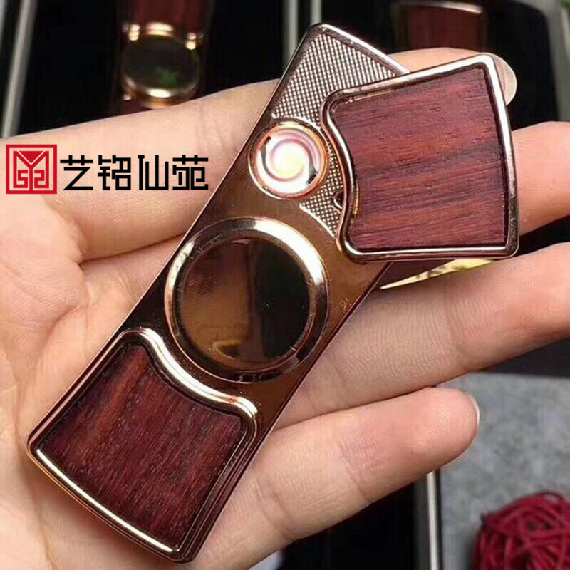Small Leaf Purple Sandalwood Fingertips Top Lighter With Own Wheel Flash Light Red Wood Lighter Birthday Boyfriend Table White Gift