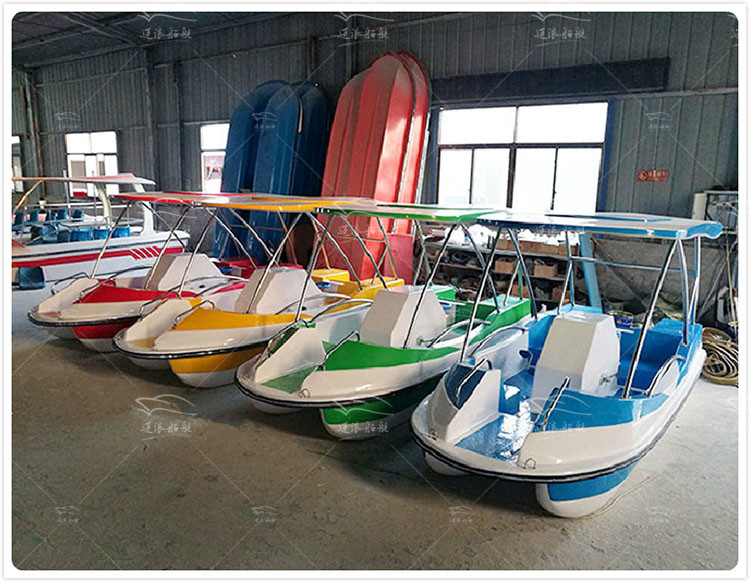 Double-layer fiberglass electric boat 4 people self-draining scenic pedal boat pedal boat park cruise boat hand rowing