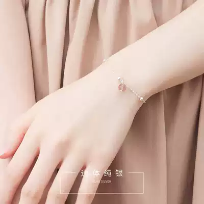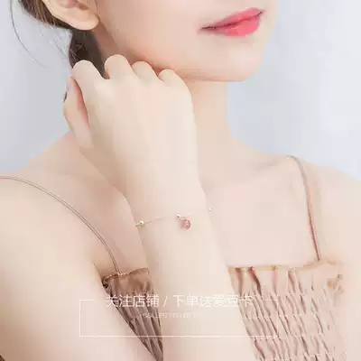 925 sterling silver Strawberry crystal Girlfriends keepsake Sisters a pair of moonstone bracelets Student ins niche design Peach blossom