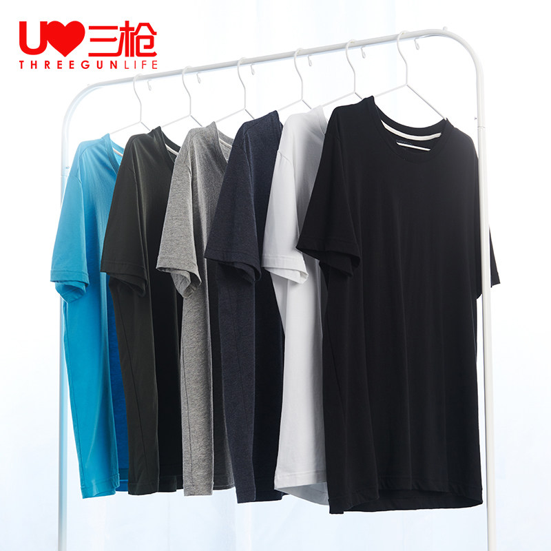 Triple gun T-shirt Male 2021 Summer New Pink soft cotton Round neck Short sleeves Bottom Loose Breathable Cotton Pure Color Sweatshirt