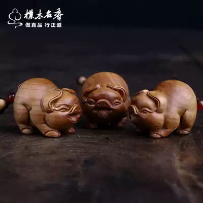 (Golden Chan Happy Pig) Sandalwood Pendant Pig Three-legged Golden Chan fortune ornaments Laoshan Honolulu Handlebar Car Pendings