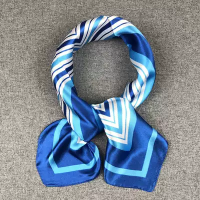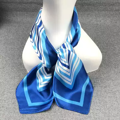 Small square scarf female blue striped color wild scarf Korean literary decoration multi-function summer small scarf occupation