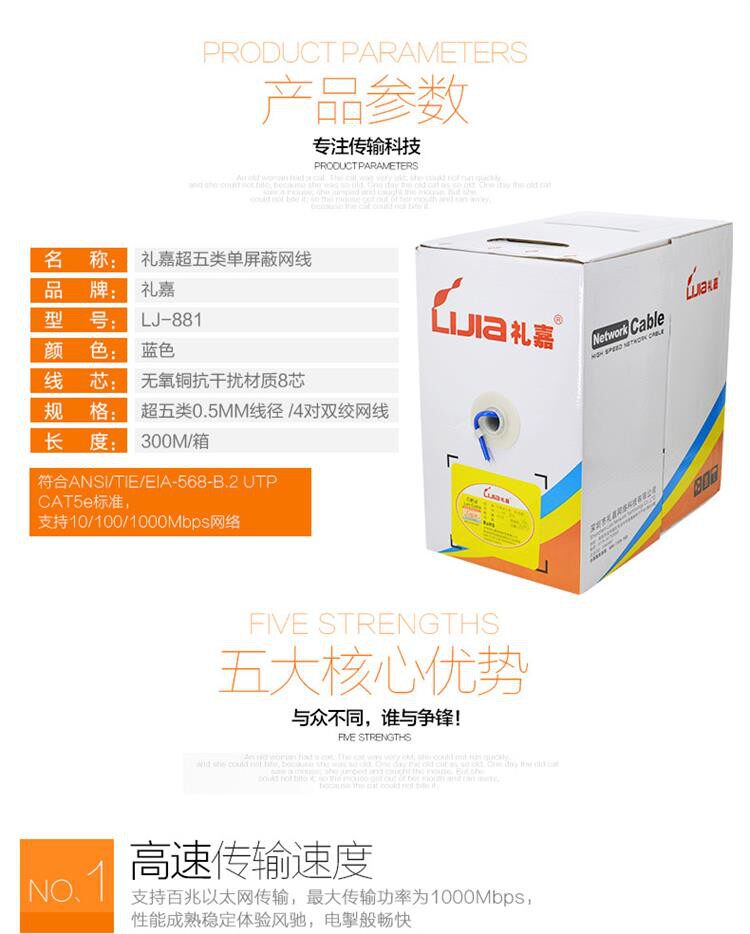 Liga 881 ultra - five shielded mesh line pure oxygen - free copper 0 5 core aluminum foil single shield blue 100 mega 300 meters