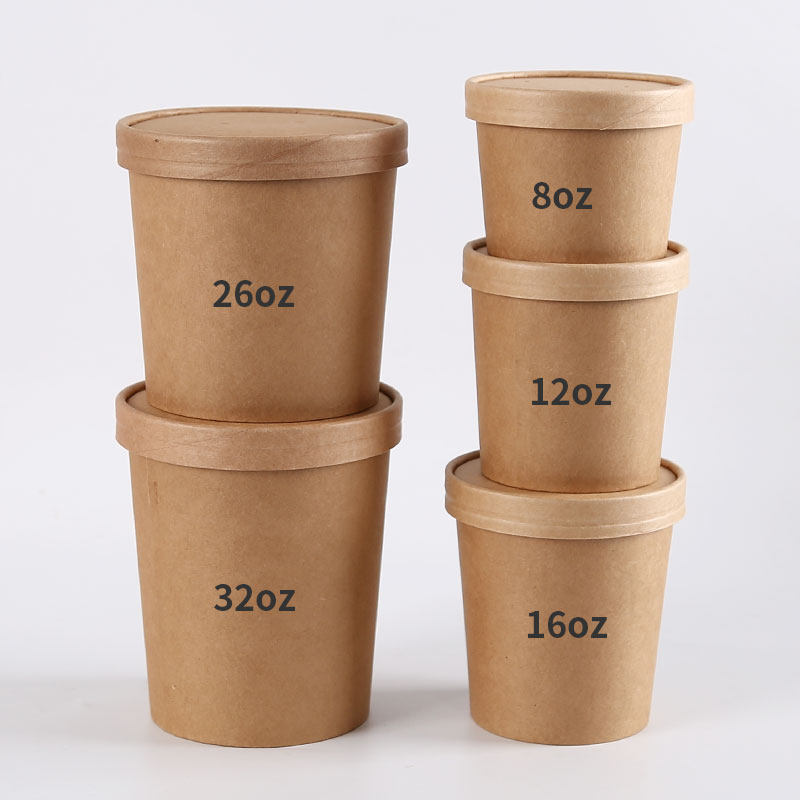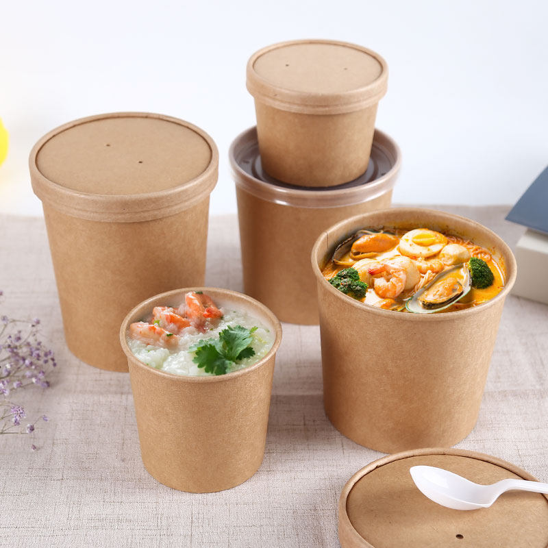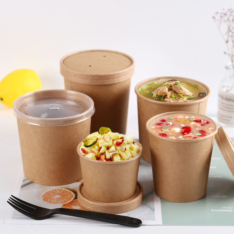 Disposable kraft paper Porridge Barrel Paper Bowl Round with lid outside delivery Snack Meal Kit Packing Box Soup Bowl Soup Bowl