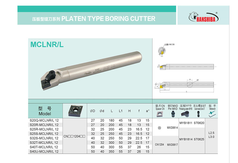 S20R-MCLNR12 positive knife S25R-MCLNR12 positive knife S25R-MCLNL12 anti-knife S25S-MCLNR12 positive knife S25S