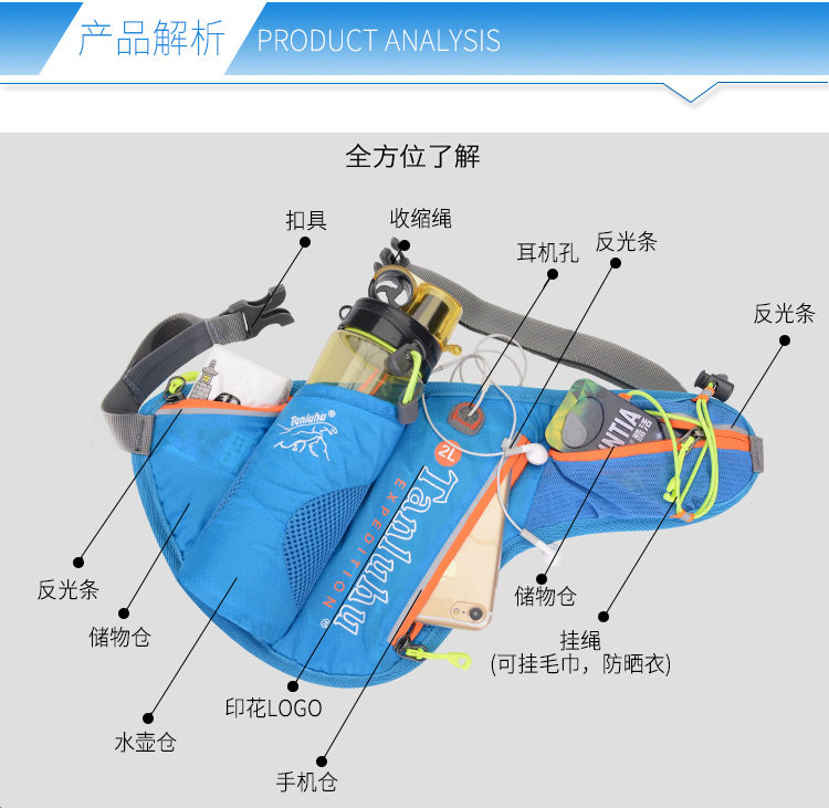 Portable close-fitting running kettle bag men's and women's multi-functional sports chest bag riding mountaineering waterproof mobile phone bag cup bag