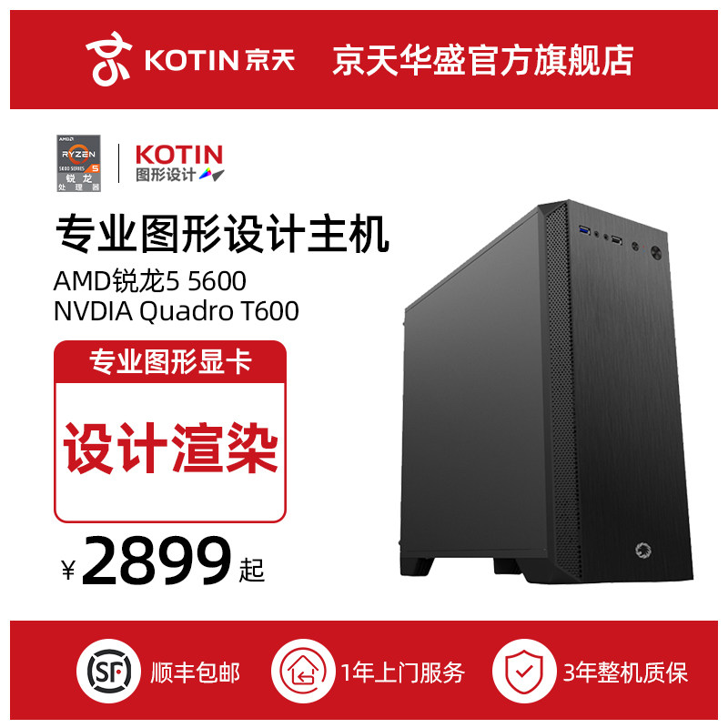 (Designer special computer) Jingtian Huasheng AMD R5 5600X T400 T600 T1000 professional modeling rendering host computer desktop flat drawing workstation
