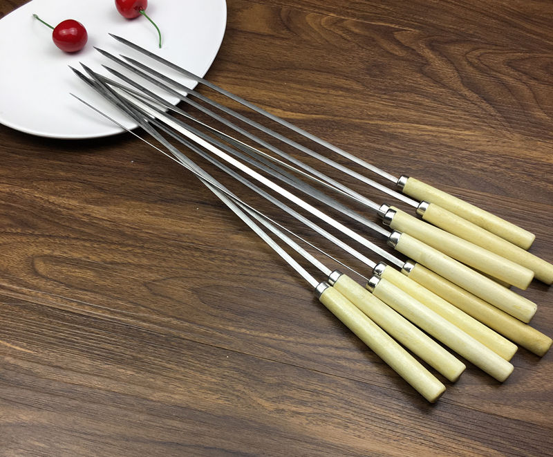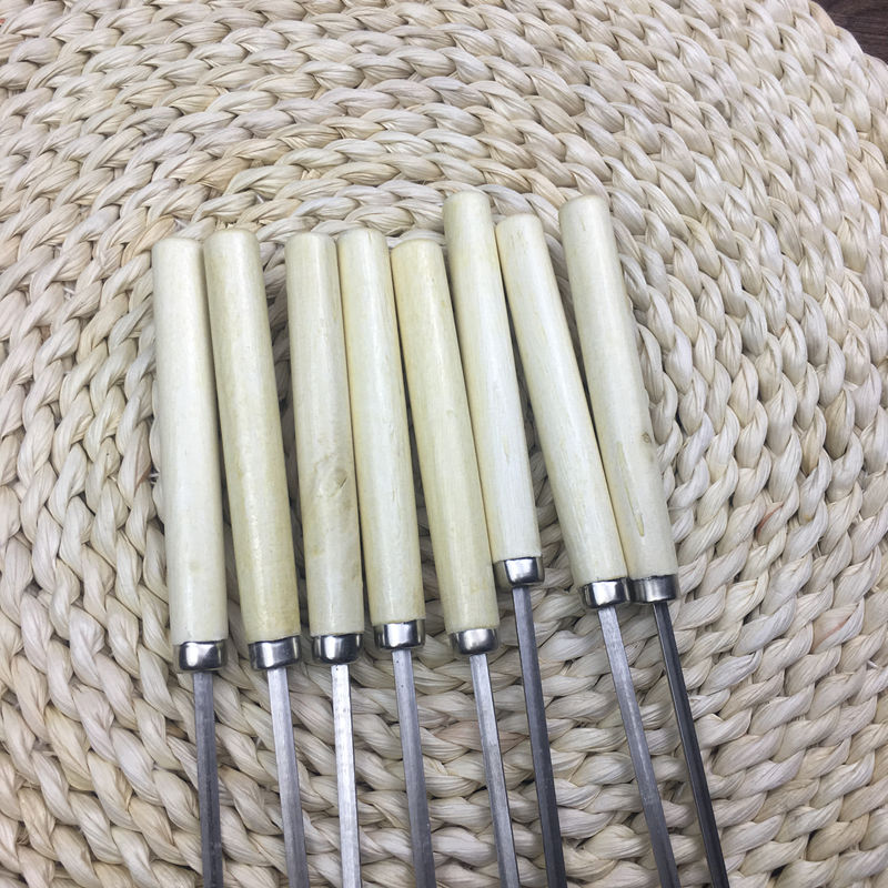 Stainless steel wood handle flat outdoor barbecue string barbecue label steel label iron label accessories tool supplies