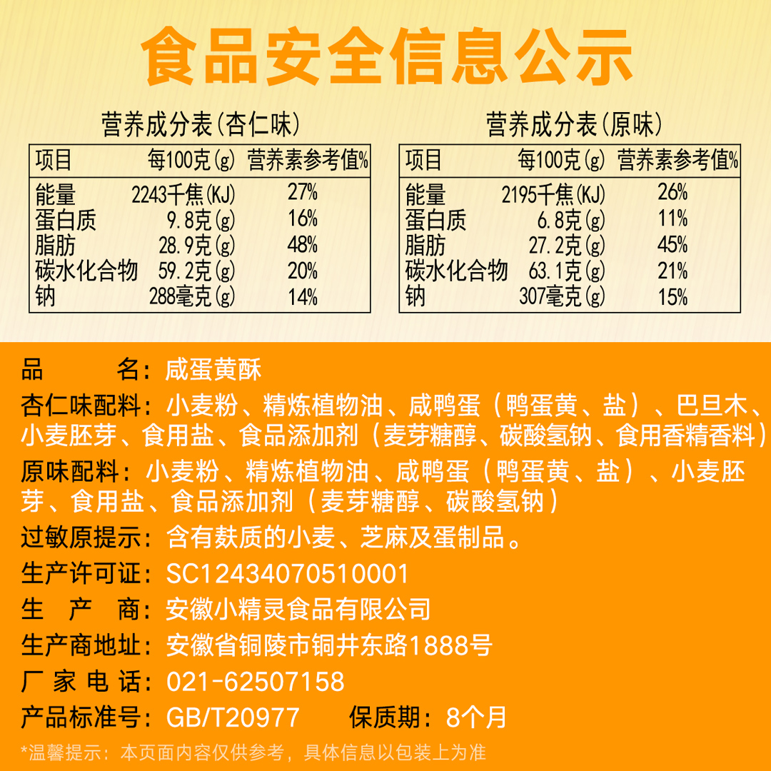 Small wheat flour refined vegetable oil salted duck egg (duck egg yellow salt) wheat germ-bud edible salt, etc. as detailed in the packaging
