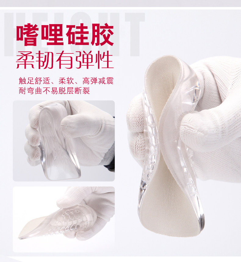Silicone gel heightening insole female type half cushion men's invisible sports casual sails cloth shoes inner heightening cushion 3cm large long legs 1