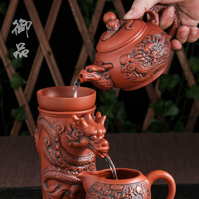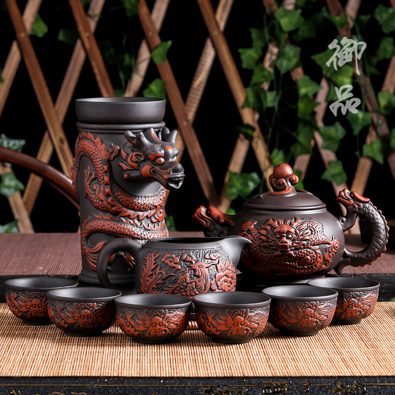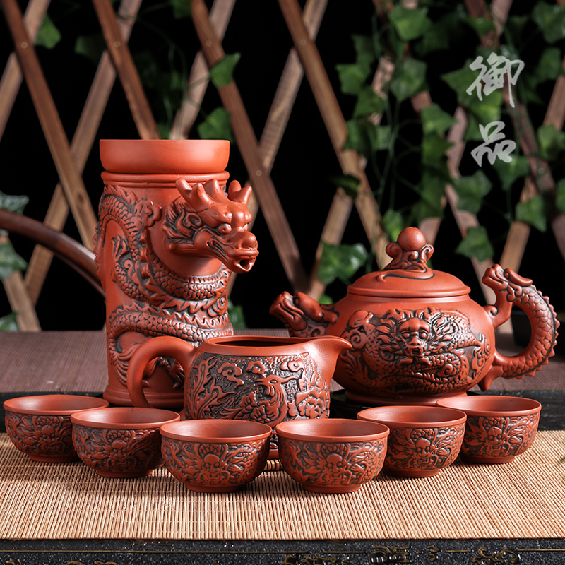 Purple Sand Kongfu Tea Furniture Set Group Home Sloth Imitation Ancient Double Dragon Water Outlet Tea Maker Ceramic Flowers Tea Tea Cup Whole Set