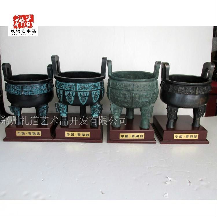 Modern simple bronze crafts opened pure copper tripod business office pattern thin three-legged two ears round tripod ornaments