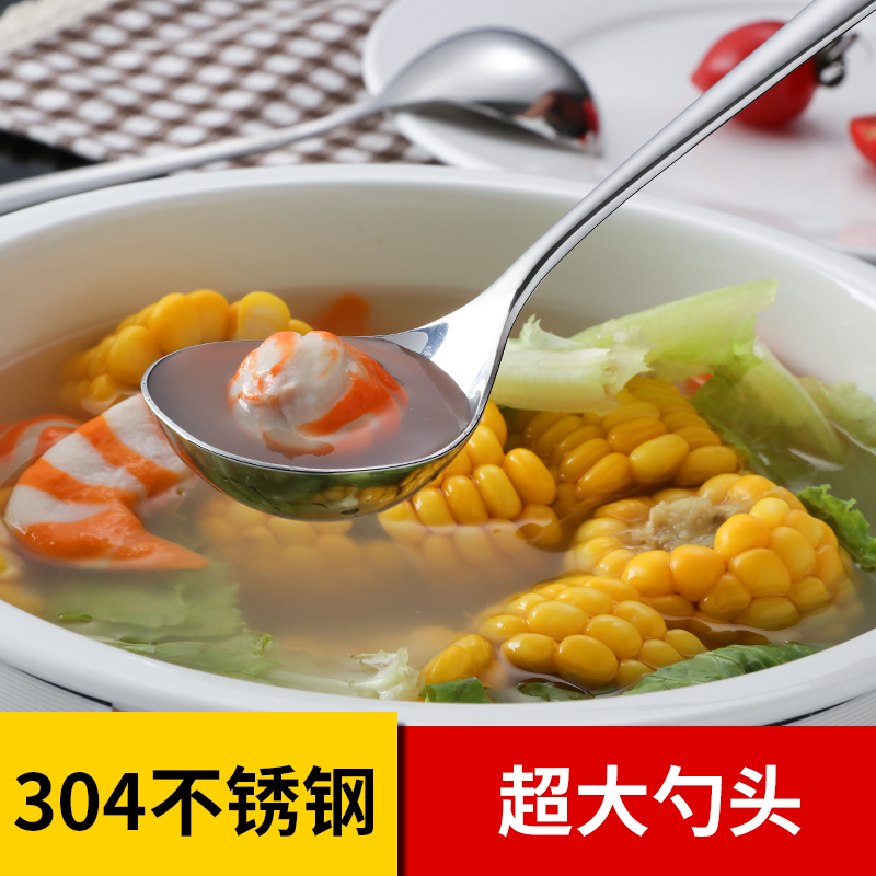 304 stainless steel deepened thickened spoon Long handle household drinking spoon Large head round spoon Small spoon spoon porridge spoon