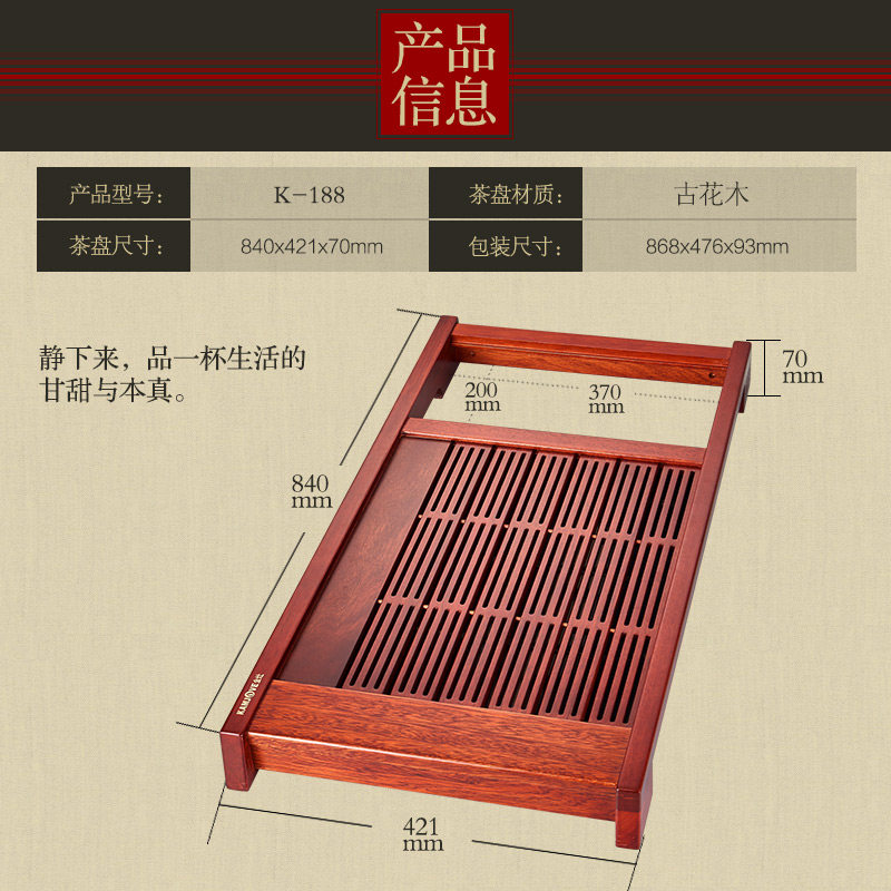 K-188 single wooden tea tray (excluding tea stove) K-188 with K9 tea stove K-188 with G9 tea stove