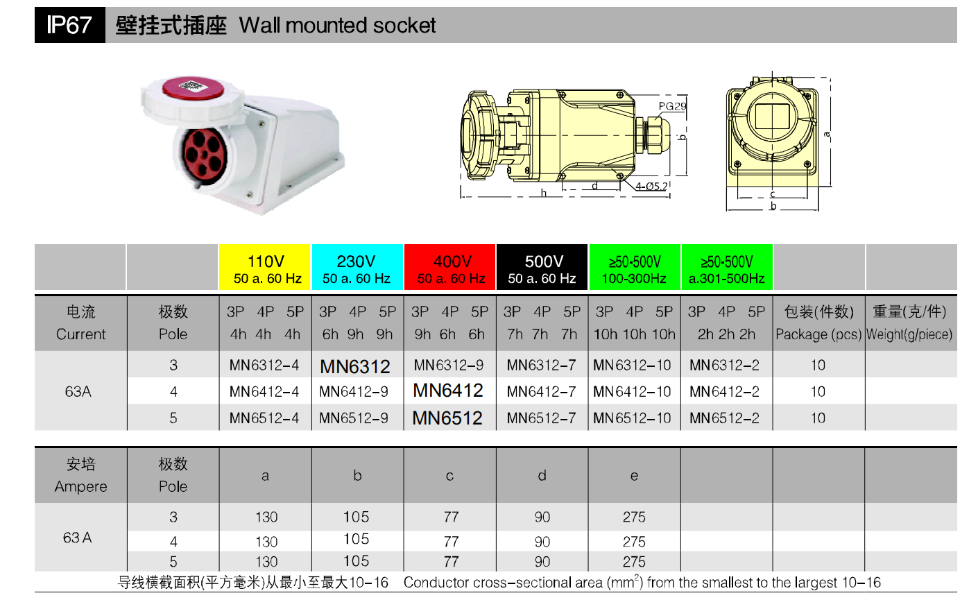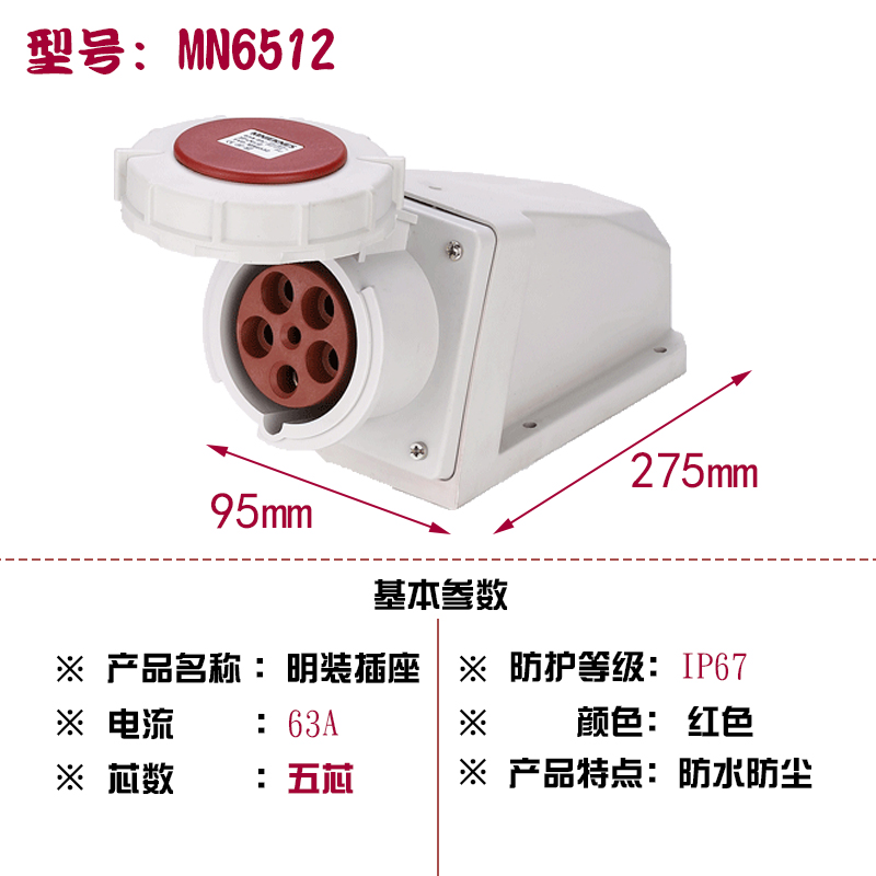 MN6512 Zhejiang Guang MNIEKNES Three-phase Five Core 63A Industrial Waterproof Plastic Active Plug 3P E N