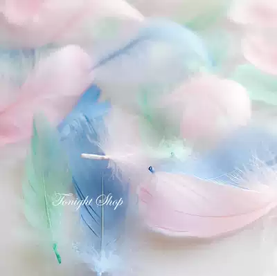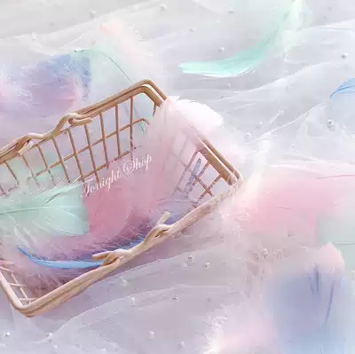 10 pink feathers, 10 blue feathers, 10 mint green feathers, 10 white feathers, 10 white feathers, 10 white feathers, 10 white feathers, 10 white feathers, 10 white feathers, 10 white feathers, 10