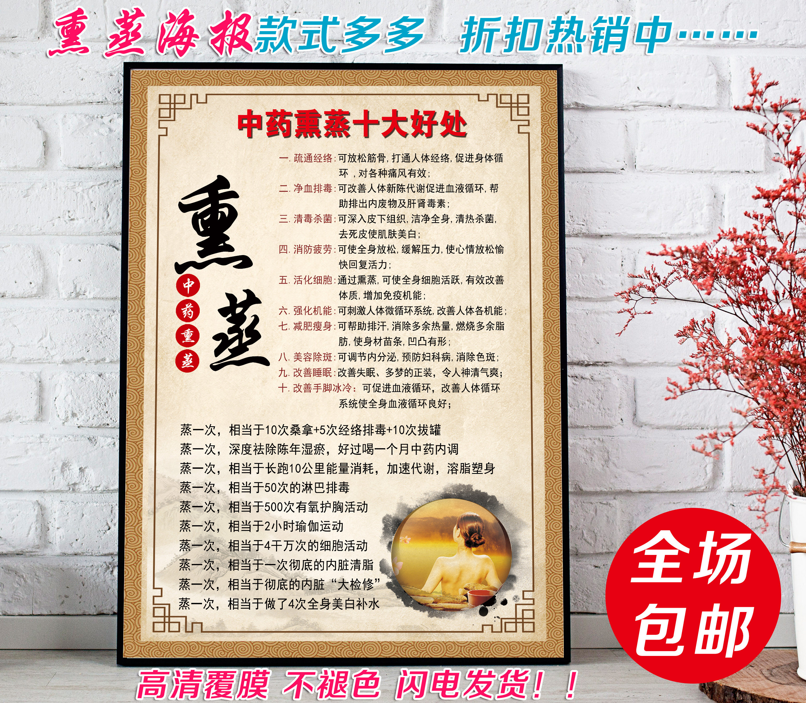 Top ten benefits of traditional Chinese medicine fumigation advertising poster health beauty salon decorative painting propaganda poster confinement sweat wall chart