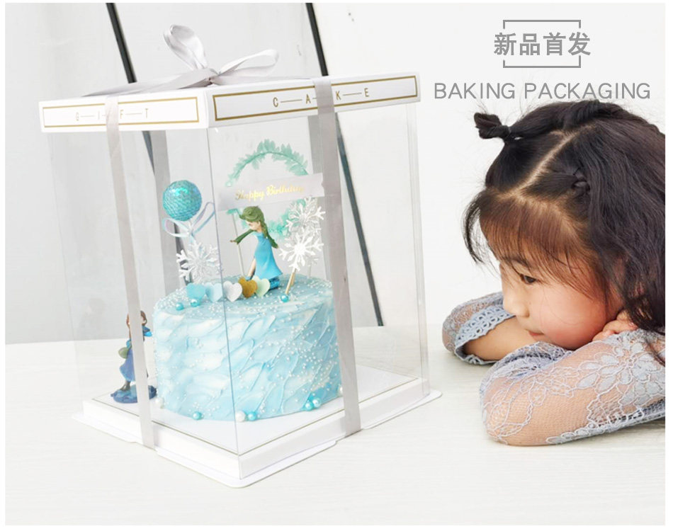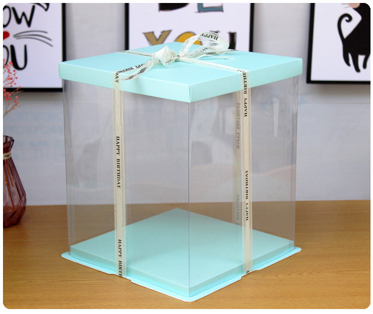 Three-layer full transparent birthday cake box 6 8 10 12 14 inch single double height Barbie balloon cake box