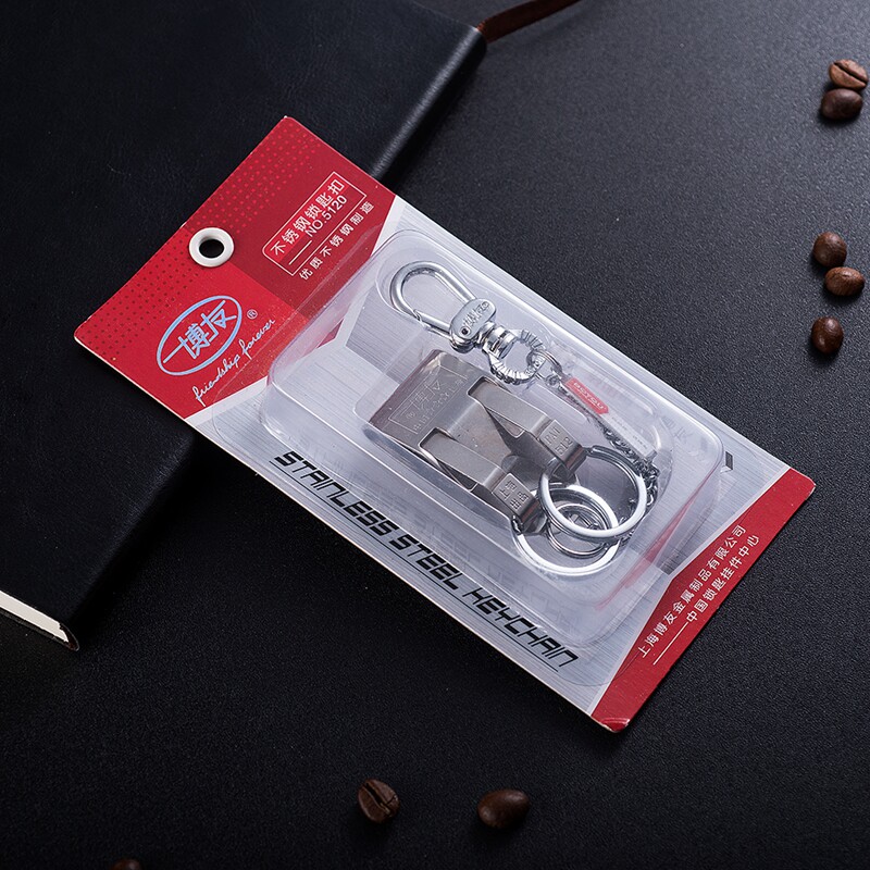 Boyou Stainless Steel Key Chain Creative Men Car Key Buckle Metal Double Ring Lock Spoon Pendant Gift