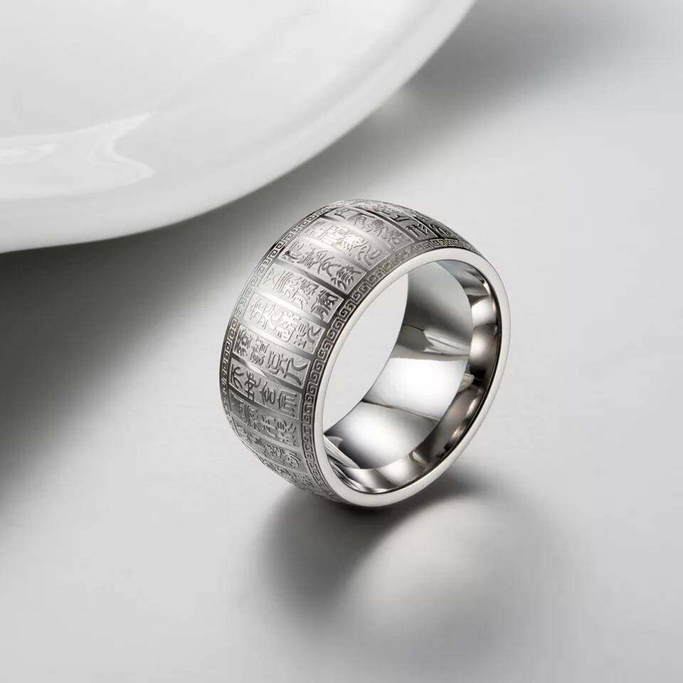 Golden titanium steel gold ring Road eight major ring Taoist ring engraved ring