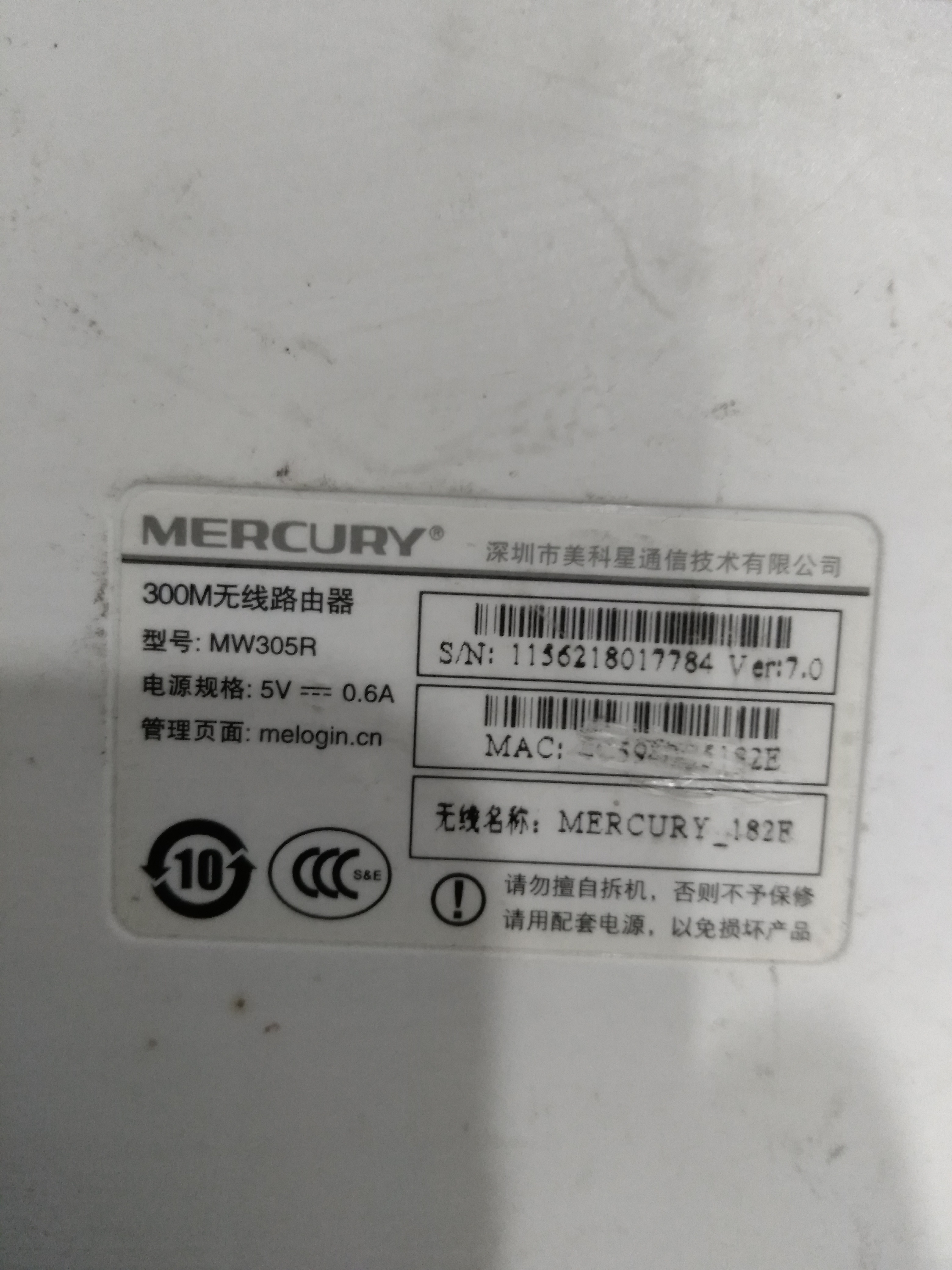 Package MERCURY Mercury MW305R 300M Dual Antenna Chinese Wireless Router 5V