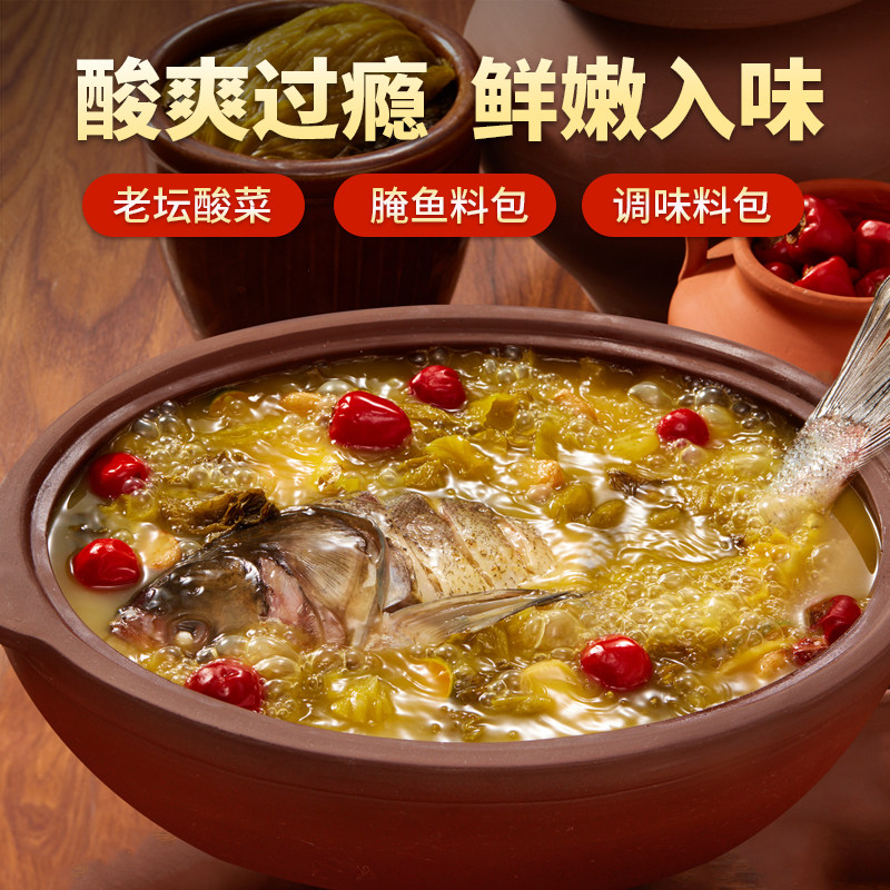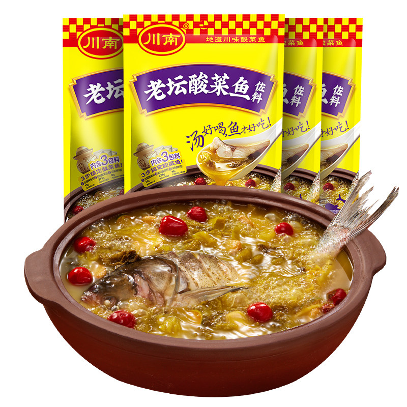 Sichuan South Laotan Acid Vegetable Fish Seasoning 300g * 4 Bags Sichuan Spicy Water Cooking seasoning Fragrance Fish Hot Hot Pot Soup Base