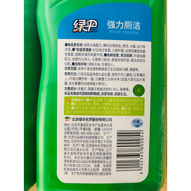 Green umbrella powerful toilet cleaning liquid 500g * 2 bottles cleaning toilet cleaning toilet deodorant toilet detergent Liqueur Dresser