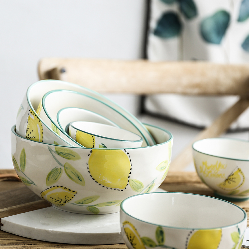 Hufu Day Style Cute Creative Bowl Hand-painted Lemon Rice Bowl Soup Bowl with Blister Noodles Bowl Salad Bowl Home ceramic Bowl Suit
