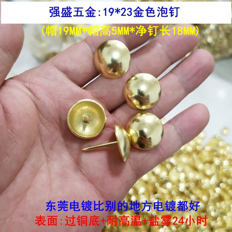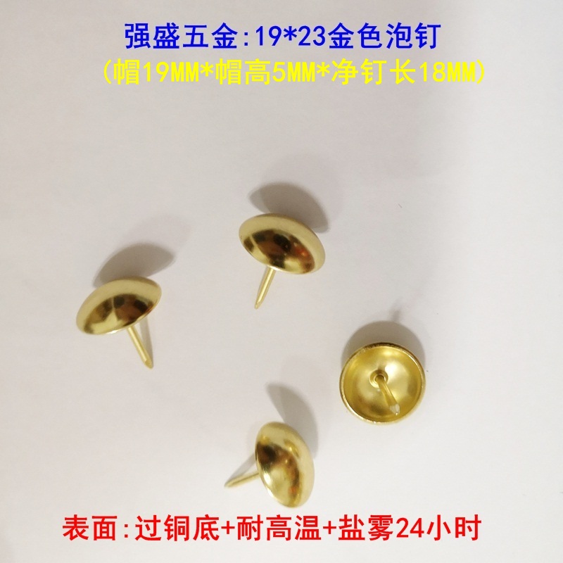 Hot Pin Cap 19MM Golden Blister Nails Bronze Nails Sandfoaming Nails Soft Bag Hard Furniture Decoration Nails Salt Spray 24 Hours