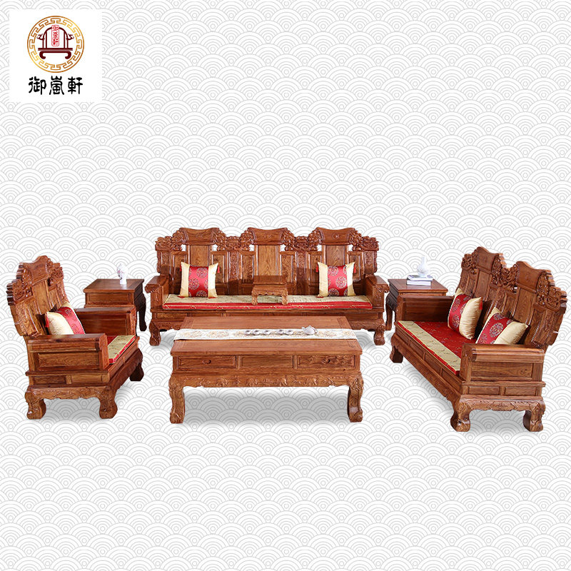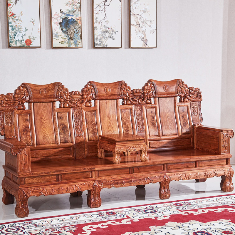 Solid wood sofa African rosewood mahogany hedgehog red sandalwood carved auspicious elephant Ruyi elephant living room combination seat