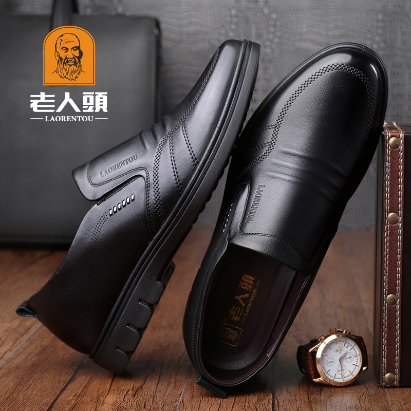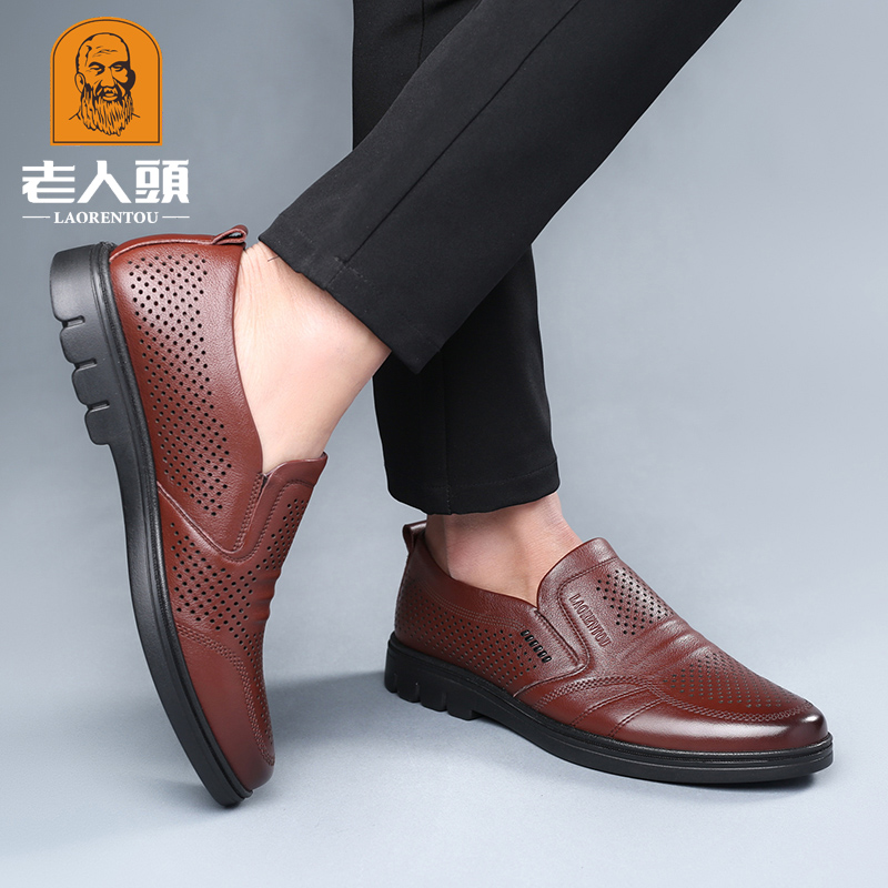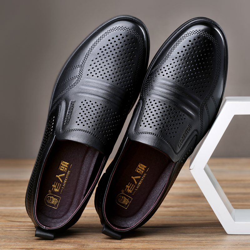 Elderly Head Men Shoes 2022 Spring Business Casual Leather Shoes Men Genuine Leather Hollowed-out Soft Sole Casual Shoes