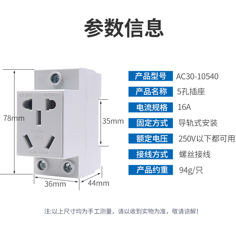 Zhengtai AC30 Five-hole 2-plug 3-3 16A multifunction modular distribution box rail style air conditioning socket 10540