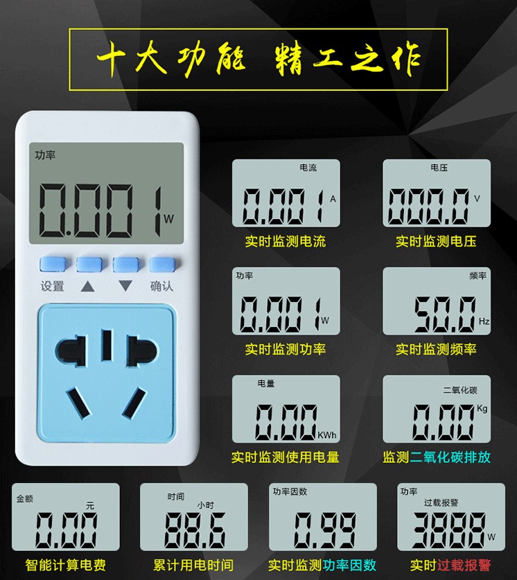 Metering socket power monitor 10A16A air conditioning meter current voltage power meter socket electroplating standard