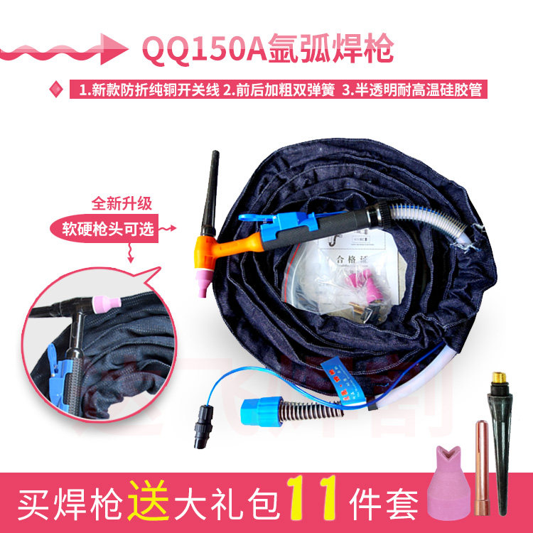 Double spring QQ150A argon arc welding gun translucent silicone tube gas-cooled WS250WS200 argon arc welding machine welding handle wire
