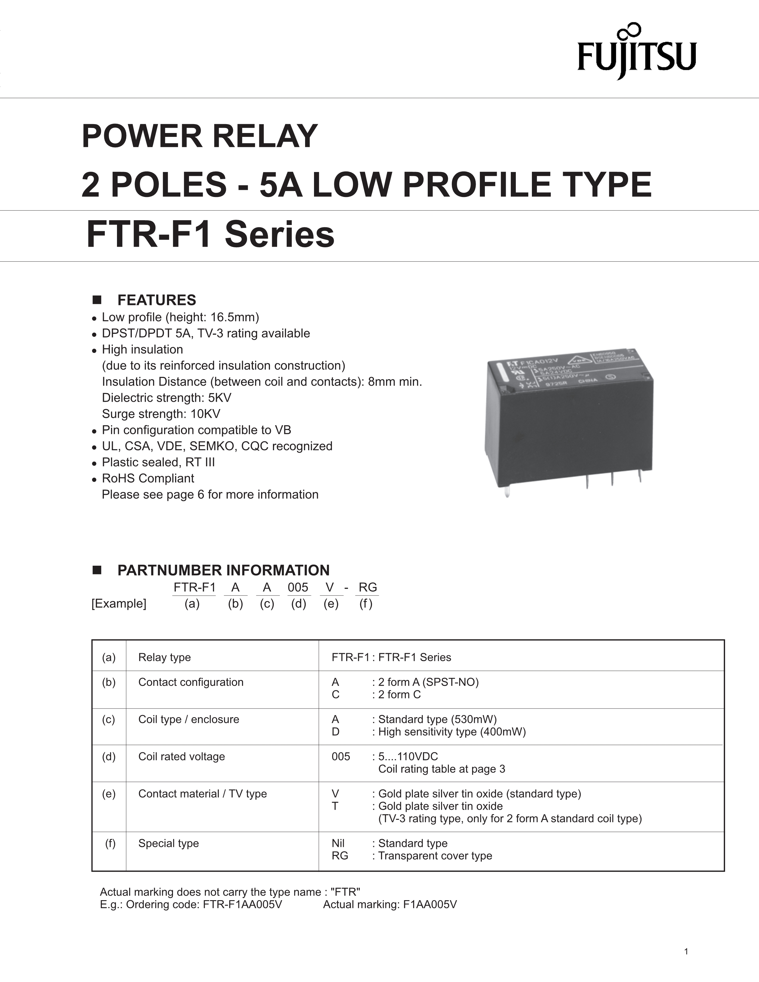 Fujitsu FTR-F1CA FTR-F1CA H1CA H1CA H1CD H1AD H1AD 012V 024V 024V 12V 24V T