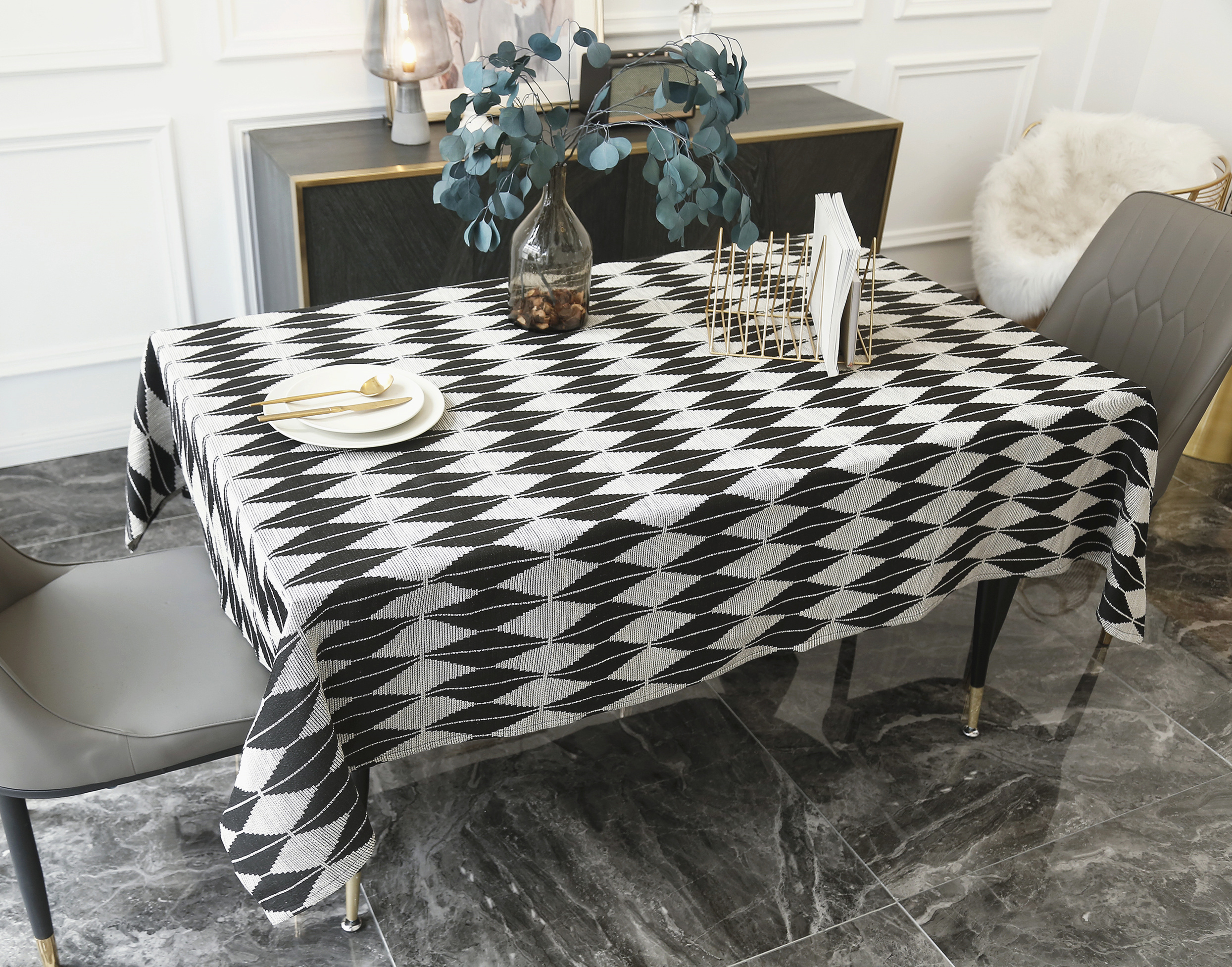 Nordic style black and white plaid dining table fabric ins wind modern simple rectangular tablecloth net red photo