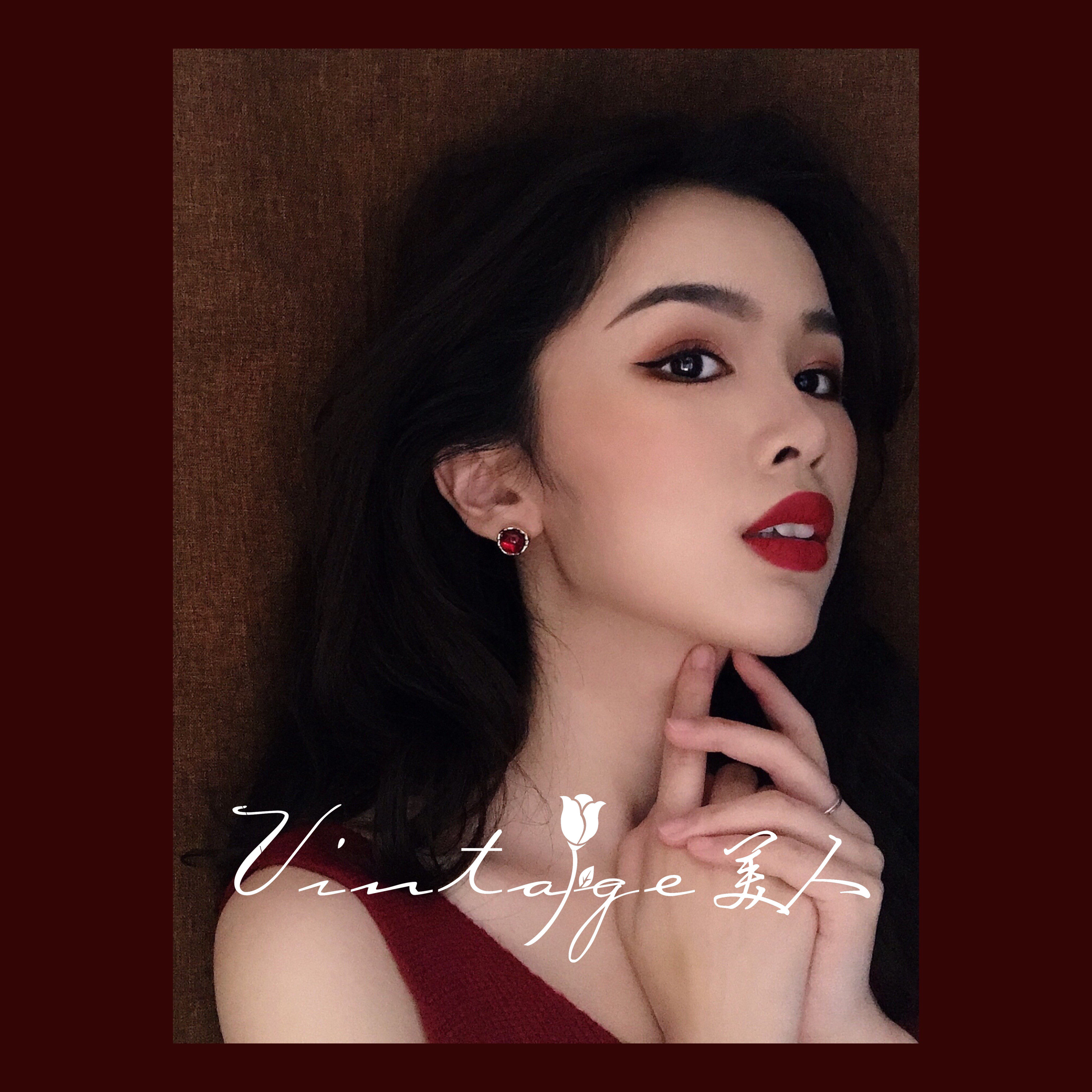 A Berry French idyllic girl retro elegant simple and transparent Ruby small earrings earrings White