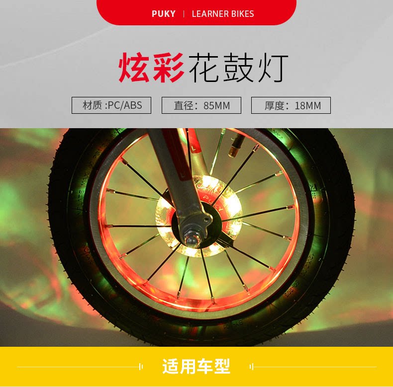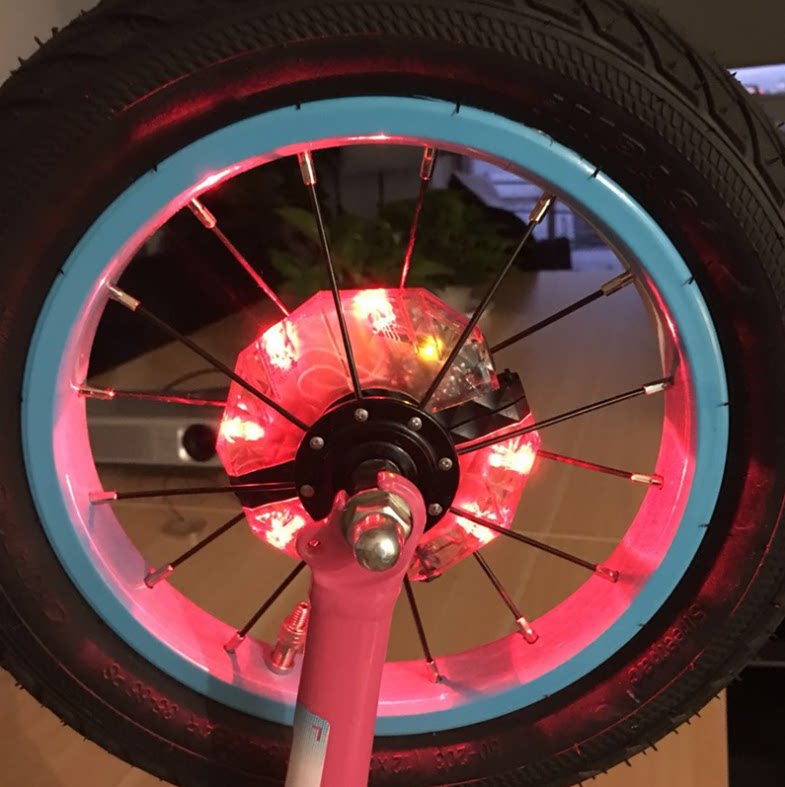 Children balance car pukky kokua headlights bike wheel hub decorated night riding light Seven color charging flower drum light