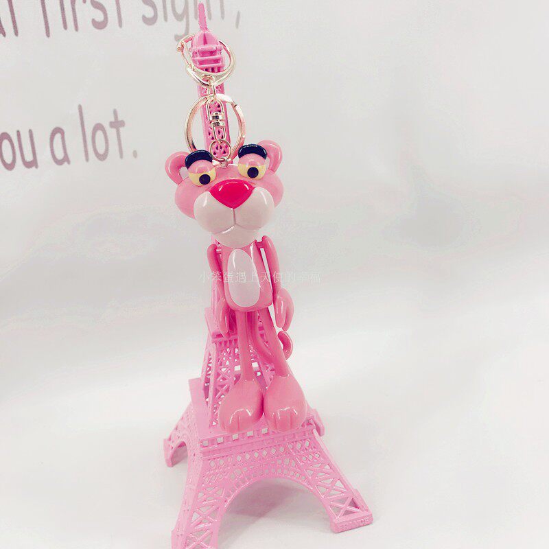 Cartoon Teenage Hearts Paparazzi Pink Leopard Series Key Buttons Pendant Naughty Leopard Plush Bouquet Accessories Plastic Toys