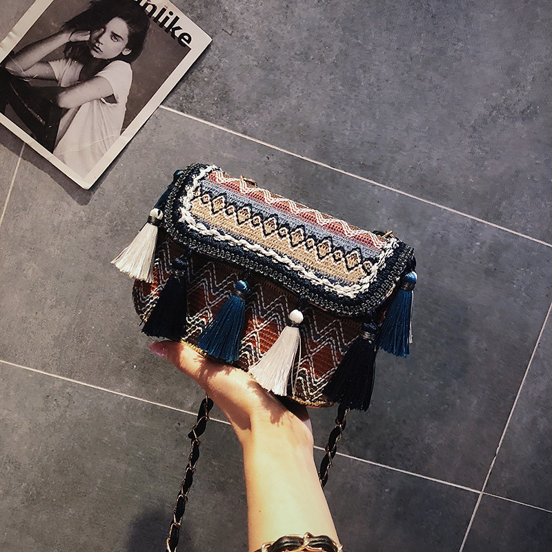 Tassel woven small bag women 2022 new casual all-match single shoulder bag chain Messenger bag ethnic style small square bag