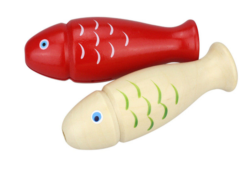 Olfe music teaching aids red wood fish ratchered percussion instrument fish-shaped children's parent-child toys