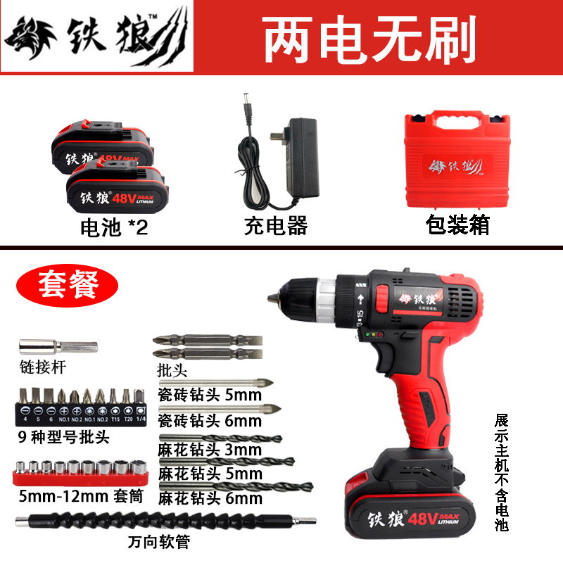 Iron wolf 48 brushless electric drill One electric standard iron Wolf 48 brushless electric drill two electric standard iron Wolf 48 brushless electric drill one electric package Iron Wolf 48 brushless electric drill two electric package Iron Wolf 48 brushless electric drill (bare metal head
