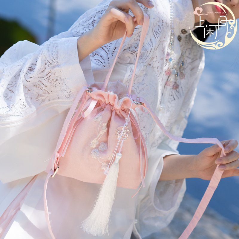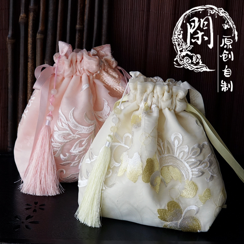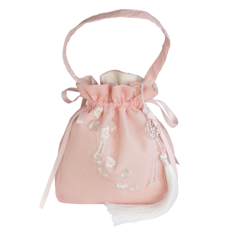 On the leisure month, the national style, the ancient style, the embroidery, the flower, the Hanfu, the bag, the oblique cross-beam bag, the drawstring, the Han element, the fresh fairy, the summer