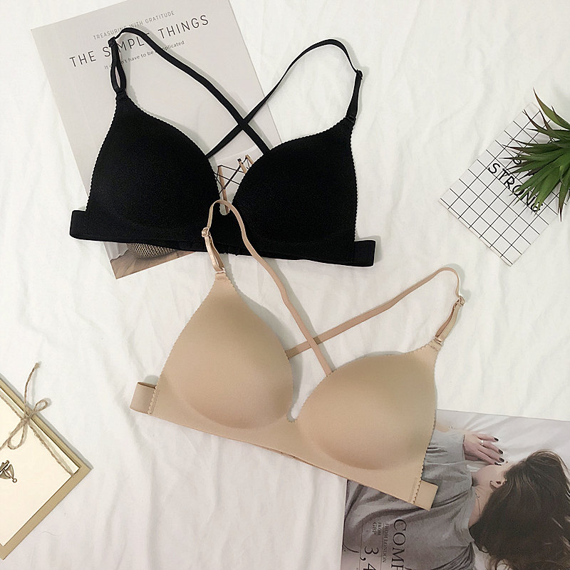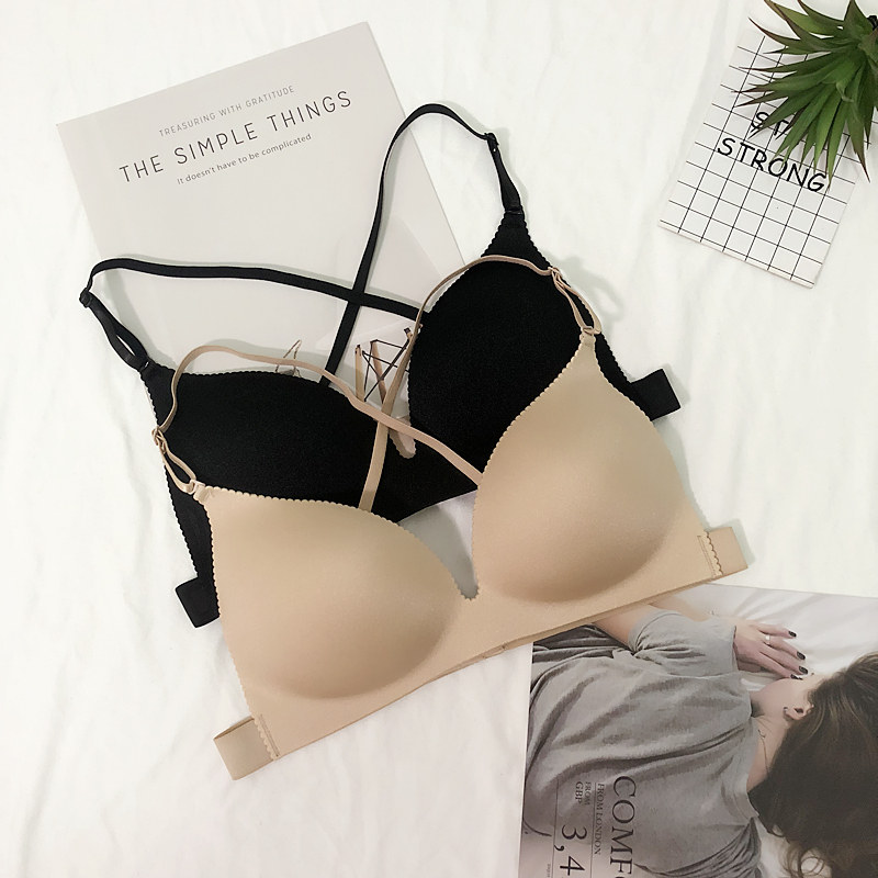 Thin Paragraph Sexy Back Cross Beauty Back Girl No Mark Wrap Chest Underwear No Steel Ring Small Breast Gathering Bra Obliterations Summer