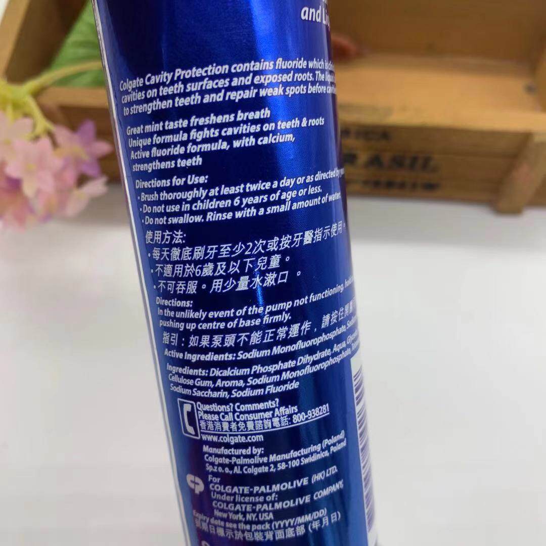 Hong Kong version of Colgate upright pressing toothpaste imported anti-moth white calcium fluoride tooth fresh breath 130g